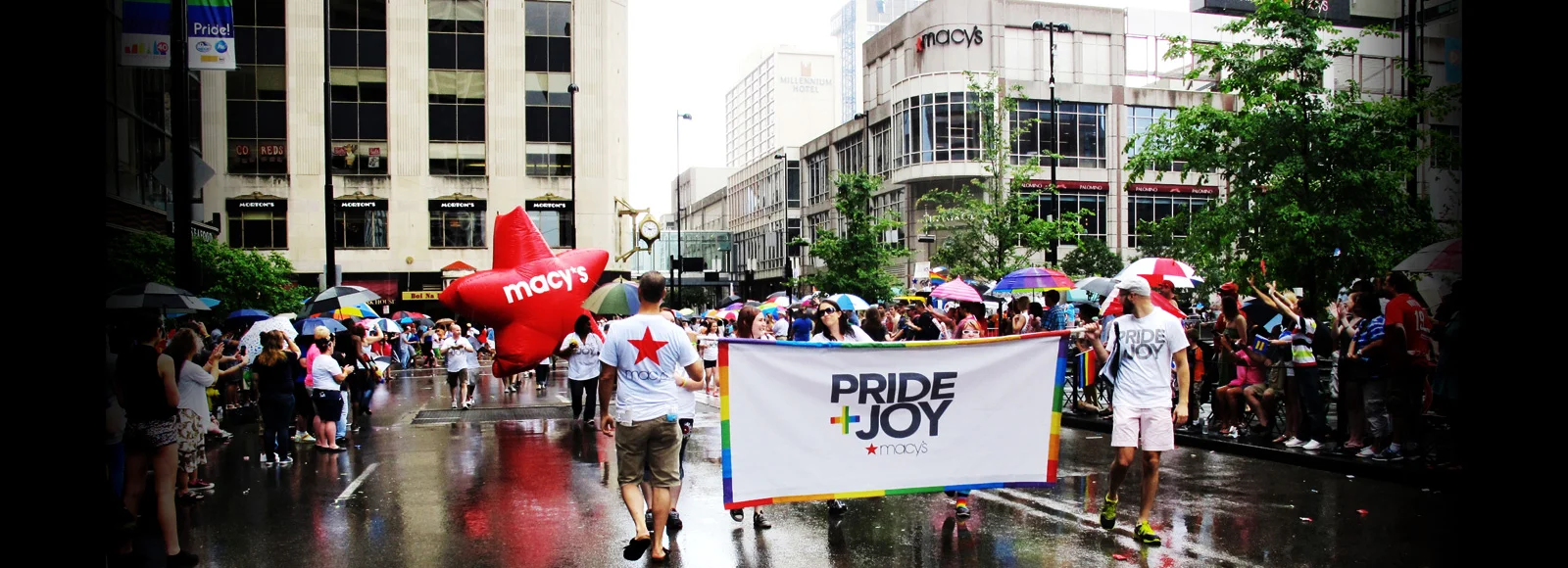 Pride + Joy Month is an annual sitelet that's created in support of LGBT communities. Its goal is to engage the LGBT consumer via philanthropic efforts and exciting parades and in-store events.